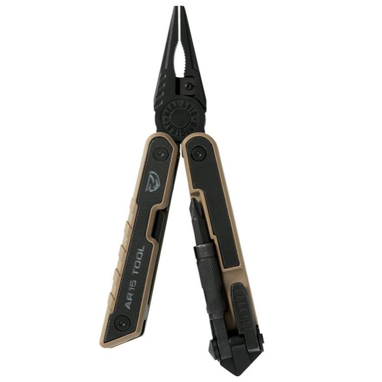 37-In-1 Tactical Gun Multi-Tool. This beefy, folding X-frame tool is built specifically for the needs of AR15 owners who want to keep their gun up and running. It starts with textured iron tough G-10 side-plates for an extra-sure grip. The frame itself is fully loaded with a focused set of highly capable AR platform tools. It equips users to quickly remove carbon from all 12 critical surfaces of the bolt carrier group, make repairs in the field or on the bench, reduce malfunctions, add or remove accessories, make sight adjustments, and easily disassemble and reassemble their guns. This is the ultimate multi-tool for the AR15!