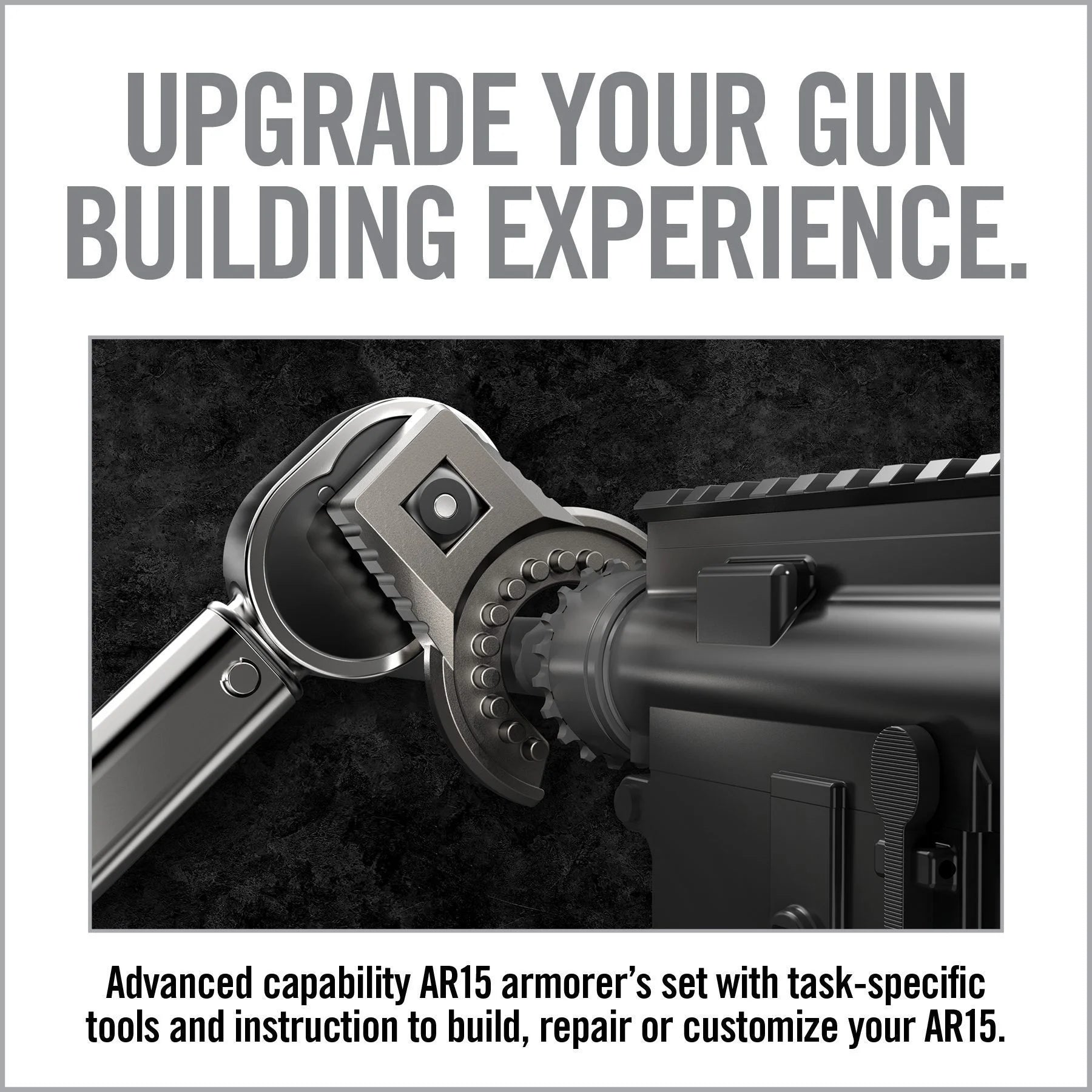 Advanced capability AR15 armorer’s set with task-specific tools and instruction to build, repair or customize your AR15.